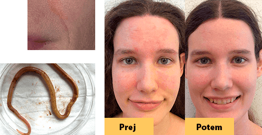 Dolga leta sem trpela zaradi črevesnih črvov in alergij, nobenih zdravil nisem uporabljala. Tudi poleti nisem mogla nositi športnih oblačil, ker so bile celotna rama in roka polni simptomov alergije. Moj znanec je priporočil Nemanex in je rekel, da bi lahko bil problem črvi. Po uporabi Nemanex se je iz mene izpraznil kup zajedavcev. Šokirana sem! Bistvo pa je, da je moja koža zdaj v idealnem stanju.
